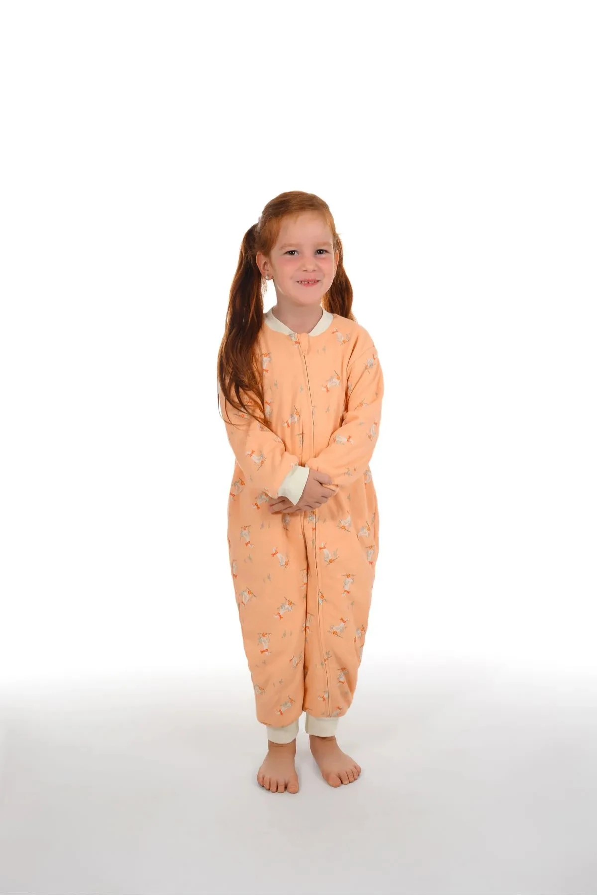 %100 Pamuk Uyku Tulumu - 1-5 Yaş - Kuş Desenli Turuncu Uyku Tulumu - 1 Tog Derece